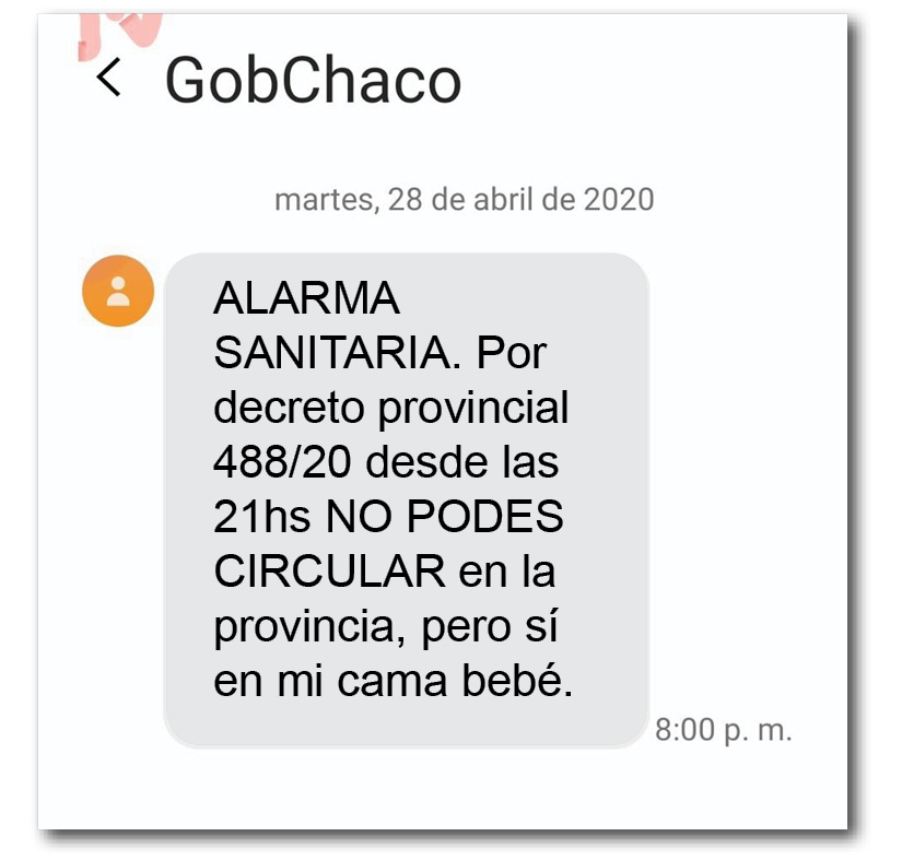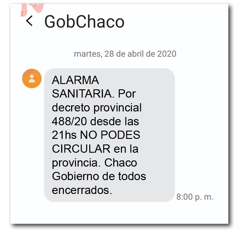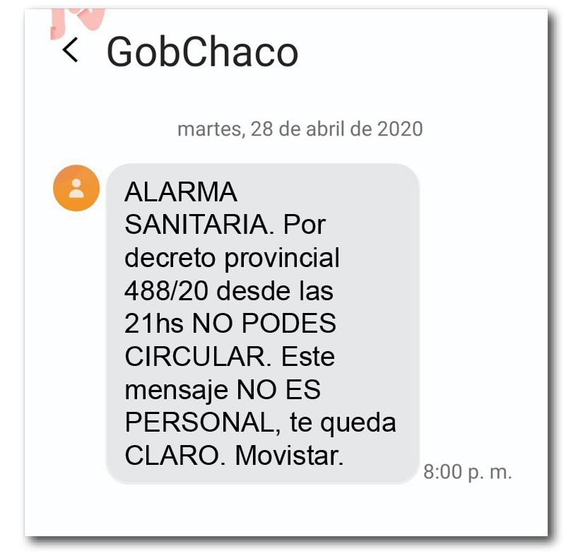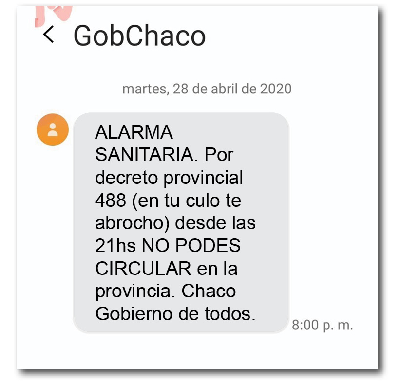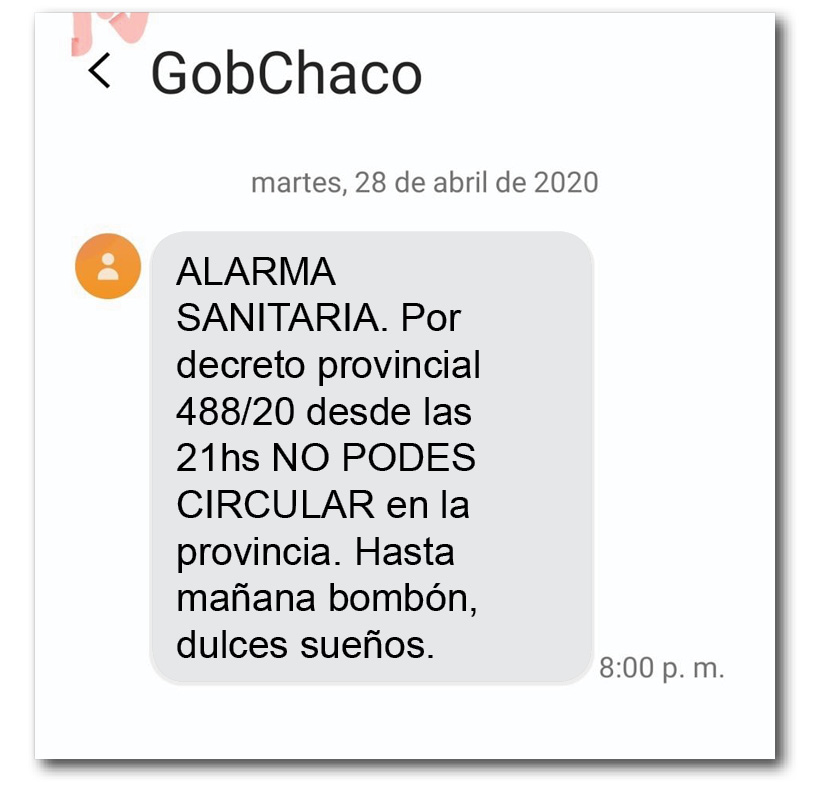 Anoche comenzaron a llegar vía SMS mensajes a los celulares de toda la provincia. En las redes sociales muchos se sintieron invadidos y se mostraron enojados ante lo que consideran una violación de su privacidad.